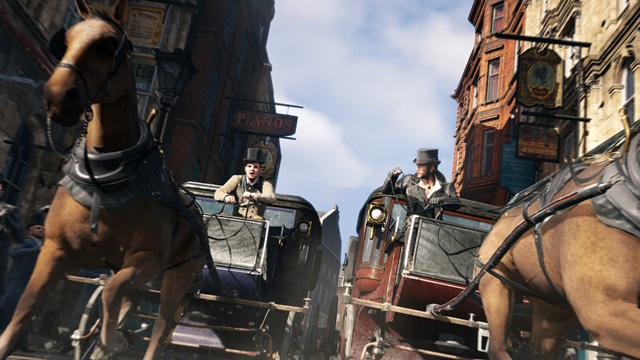 Hätte ich Assassin’s Creed: Syndicate damals gespielt, wäre ich sicherlich aus dem Häuschen gewesen. Tatsächlich hatte ich seit Langem das erste Mal wieder so etwas wie Spaß mit der Reihe, was nicht nur am viktorianischen Setting liegt. Auf dieses möchte ich aber zuerst eingehen. Angesiedelt ist das Spiel in den 1860er-Jahren in London. Erstmals schlüpfe ich in die Rolle von zwei Charakteren, die ich größtenteils nach Lust und Laune abwechselnd spielen darf: Jacob und Evie Frye. Die Zwillinge kommen in die Hauptstadt Englands, um dem kriminellen Großindustriellen Crawford Starrick das Handwerk zu legen. Dieser ist auf der Suche nach einem Edensplitter, der ihm unfassbare Macht beziehungsweise Unsterblichkeit verleiht. So ist das eben mit Größenwahnsinnigen der Marke Donald John Trump! Ich kann jedoch nicht einfach mit dem Haudrauf Jacob oder der wendigen wie diplomatischen Evie in sein Haus spazieren und ihm die Birne einschlagen. Stattdessen muss ich mühselig über konsekutive Kapitel seine Handlanger besiegen und ihm erst die Geschäfte ruinieren. Mit der Logik hat es die Reihe ja nie so gehabt. Die jahrelange Inspirationslosigkeit der Autoren ist in Assassin’s Creed: Syndicate einfach mehr nicht auszuhalten. Nichtsdestotrotz habe ich fleißig alle im Spiel enthaltenen Aufgaben abgearbeitet, denn im Gegensatz zur Story macht der Titel in puncto Gameplay eine derart gute Figur, dass er bis dato mein Lieblingsteil geworden ist.