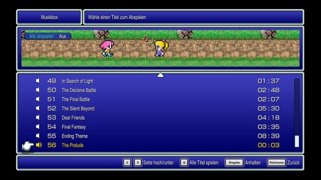 Komponist Uematsu Nobuo, der schon zu den vorherigen vier Serienteilen den Soundtrack geschrieben hat, ist auch bei Final Fantasy V wieder mit von der Partie. Auch für die Musik des Pixel Remasters zeichnet sich die Legende höchstpersönlich verantwortlich. Uns gefällt die Musik sowohl im Super-Famicom-Original als auch in der orchestralen Version des Pixel Remasters, denn tatsächlich drückt jedes einzelne Musikstück die Stimmung der Figuren passend aus. Während beispielsweise Klaviergeklimper bei melancholischen Szenen zum Einsatz kommt, erhellen Trompeten- und Gitarrenklänge die hitzigen Gefechte. Es gibt viele erinnerungswürdige Themen wie die ruhigen und fast schon besinnlichen Oberweltmelodien oder die wuchtige Musik, die beim Kampf gegen den wiederkehrenden Feind Gilgamesch zum Einsatz kommt. Wer sich am Soundtrack nicht satthören kann, was wir definitiv sehr gut nachvollziehen können, darf die Musik auch außerhalb des Spielgeschehens in der Jukebox bei den Boni abspielen. Dort findet sich traditionsgemäß auch eine Monsterfibel, wo jeder der über dreihundert Feinde katalogisiert wird, sobald wir diese einmal besiegt haben. Auch ein Artwork-Verzeichnis, in denen vor allem Künstler Amano Yoshitaka verewigt wird, ist erneut ein Teil des Bonusmaterials. Dies rundet das Gesamtpaket ein weiteres Mal sehr angenehm ab.